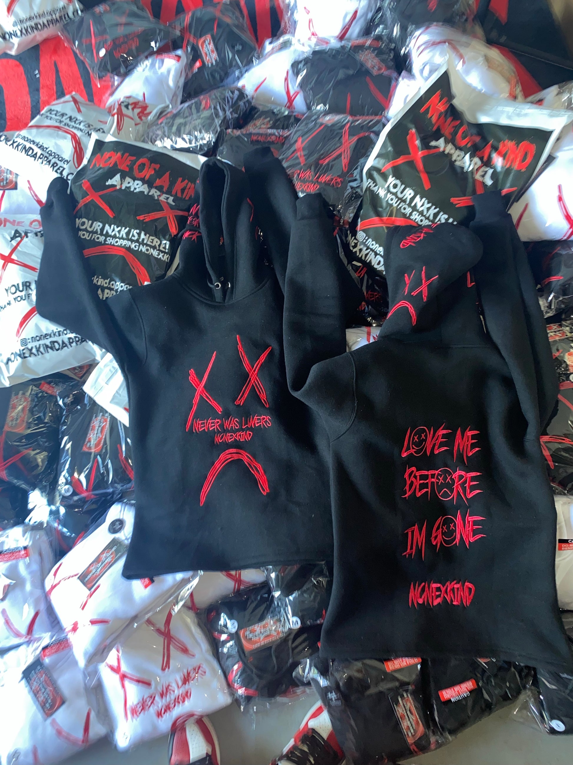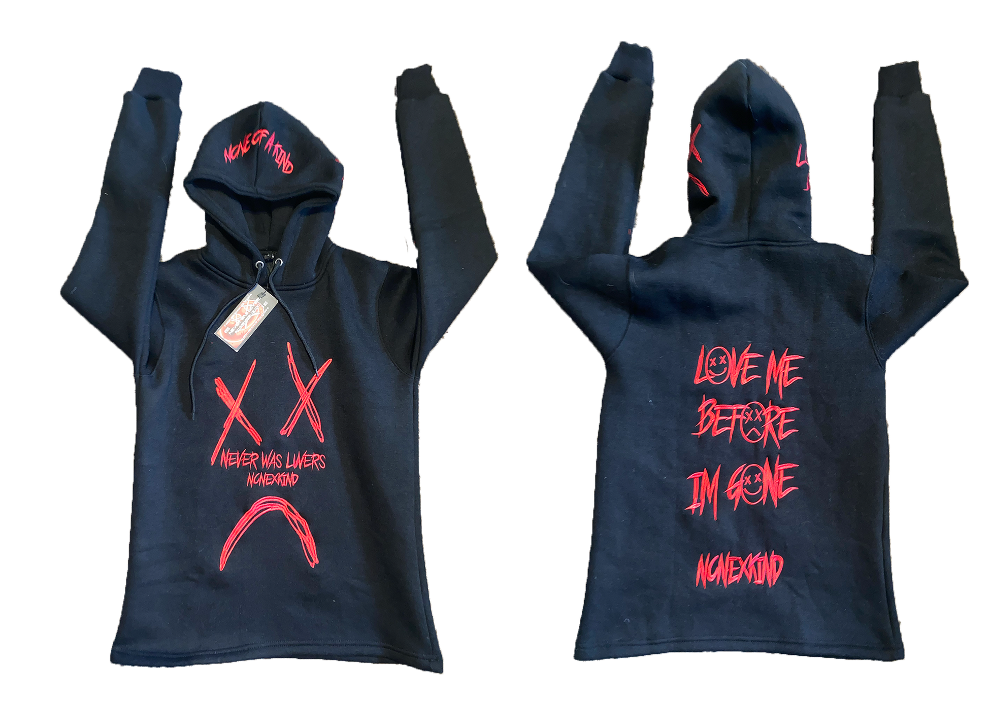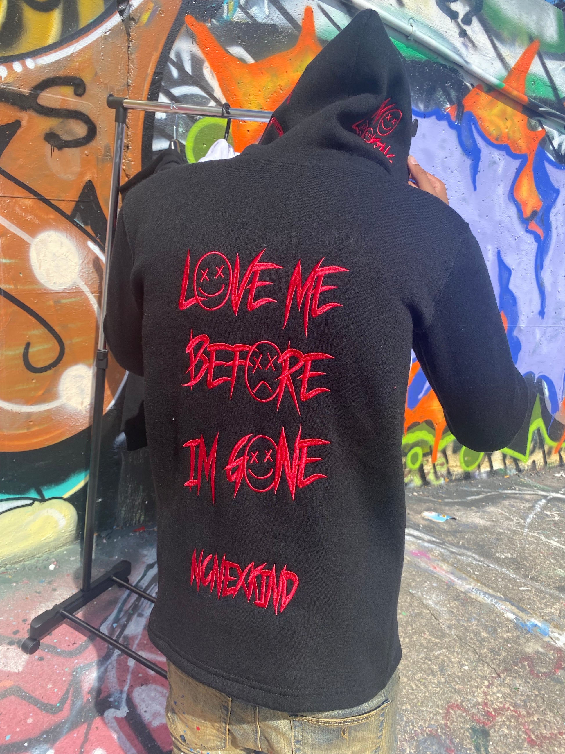 Stitched [RED] Appliqué “LOVE ME BEFORE IM GONE” on the back with Stitched RED “NONEXKIND” under it
