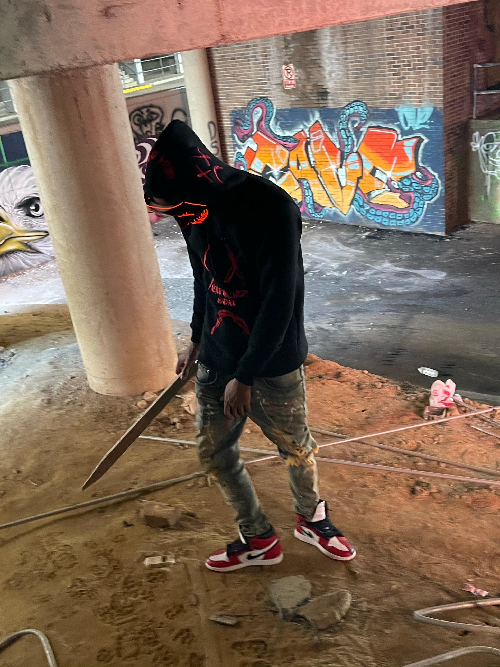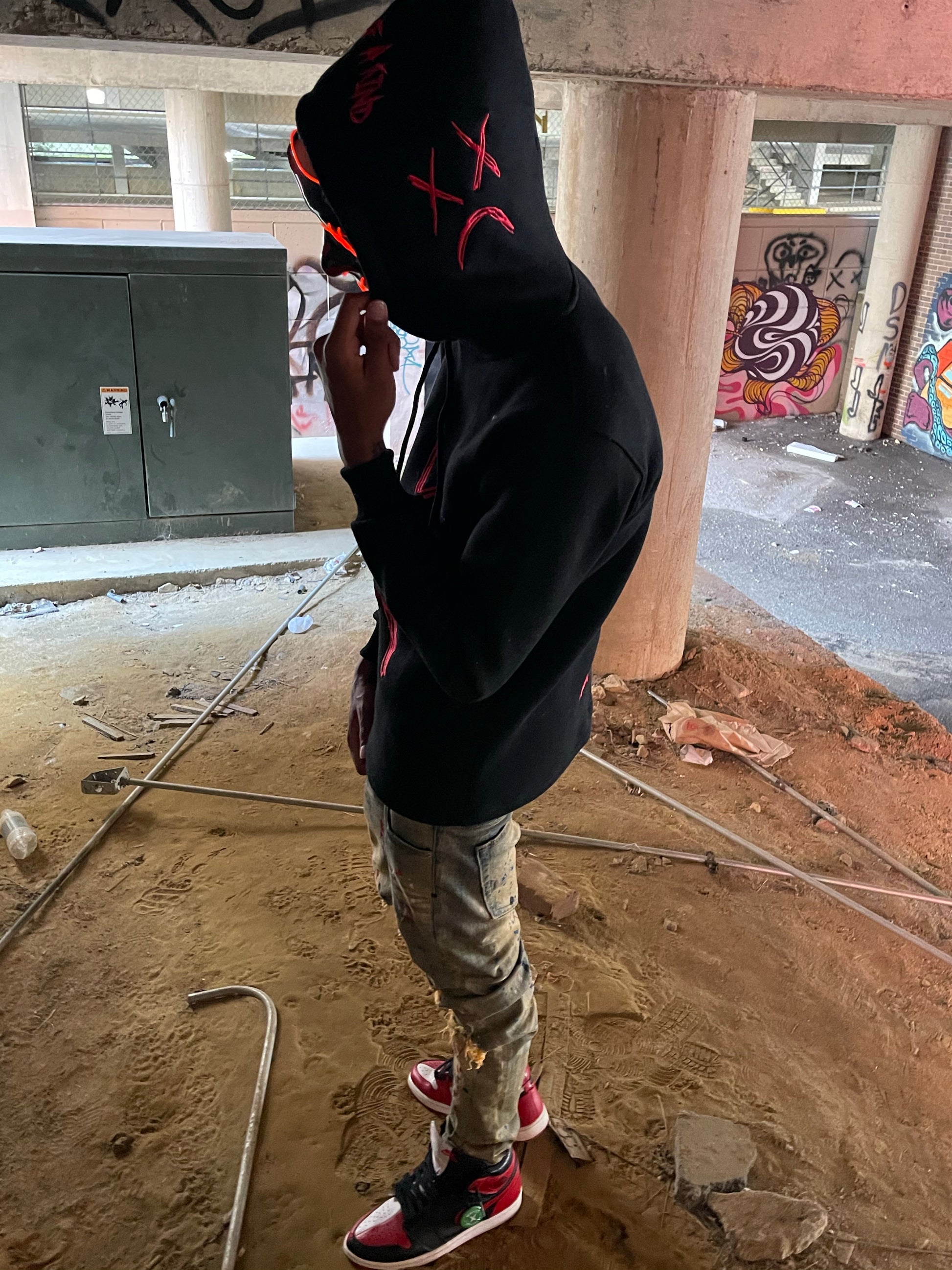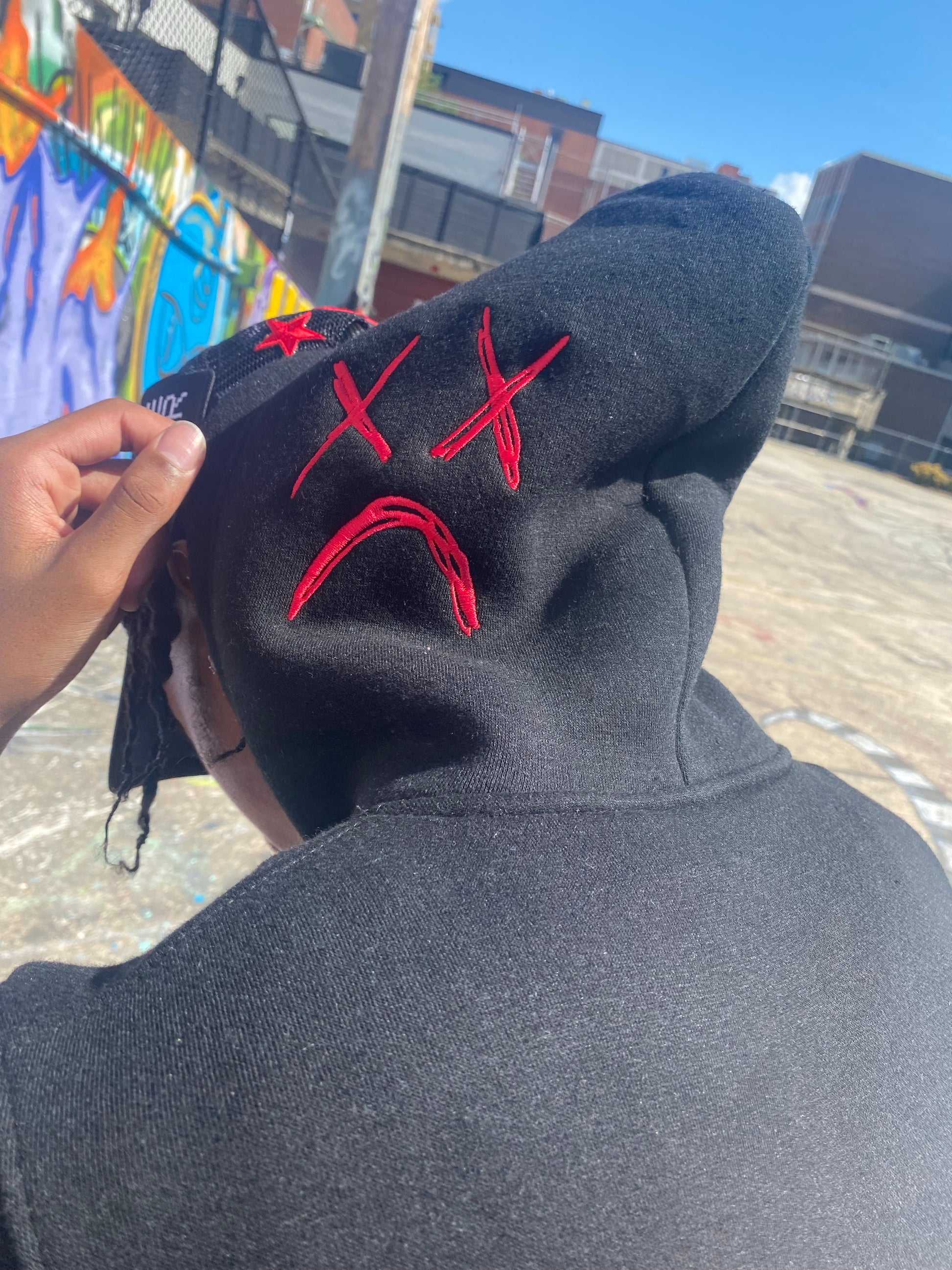 Stitched [RED] “DEAD SAD FACE” Logo appliqué on the left side of the hood
