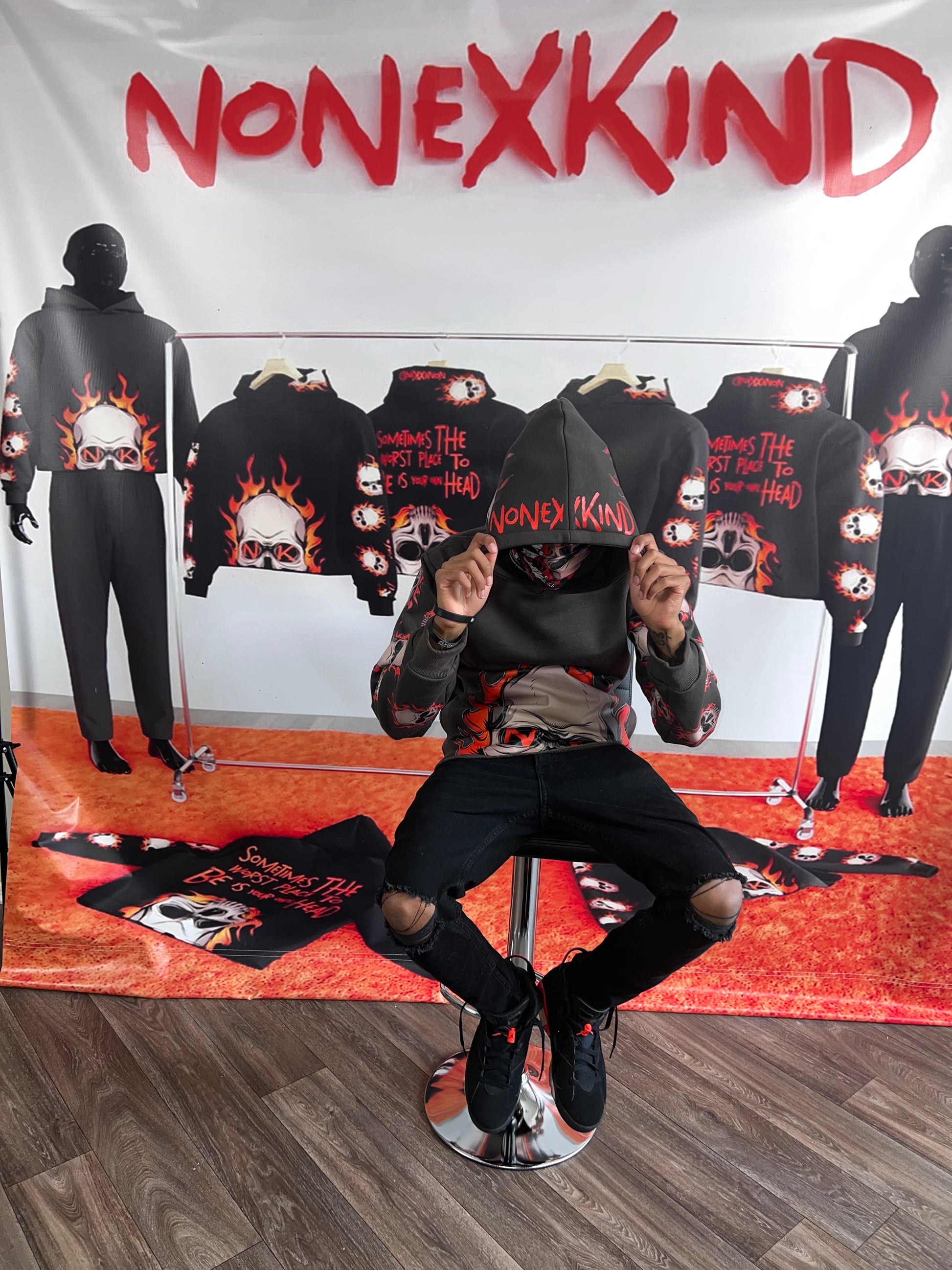SCREEN PRINTED “Nonexkind” logo at the top of the hood [RED]